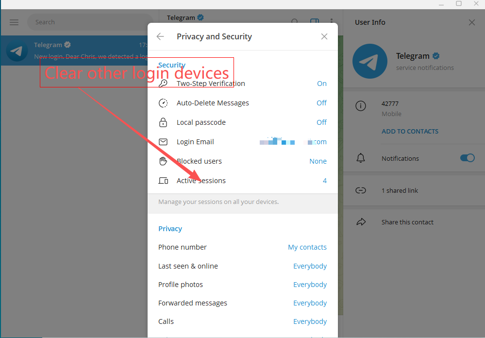 API Telegram webpage mobile client direct login method (including changing 2FA and clearing authorized devices) Telegram API Login 1. Open the app or web and enter the number we provided Next step Next step Next step Next step 2. Modify the two-step verification and login password, and kick out other login devices when appropriate Next step Next step Next step 0 0