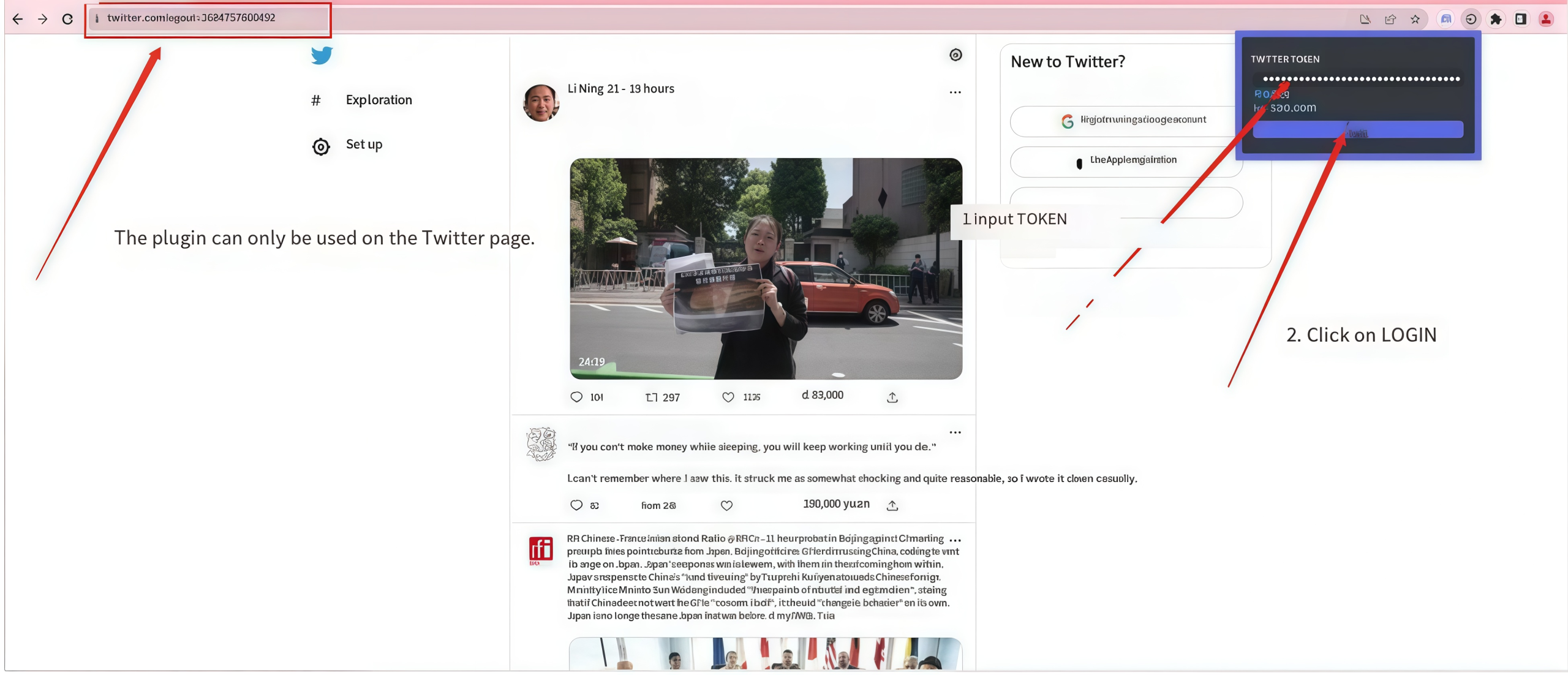 2. Open the Twitter website and use the plugin to log in by entering the auth_token.